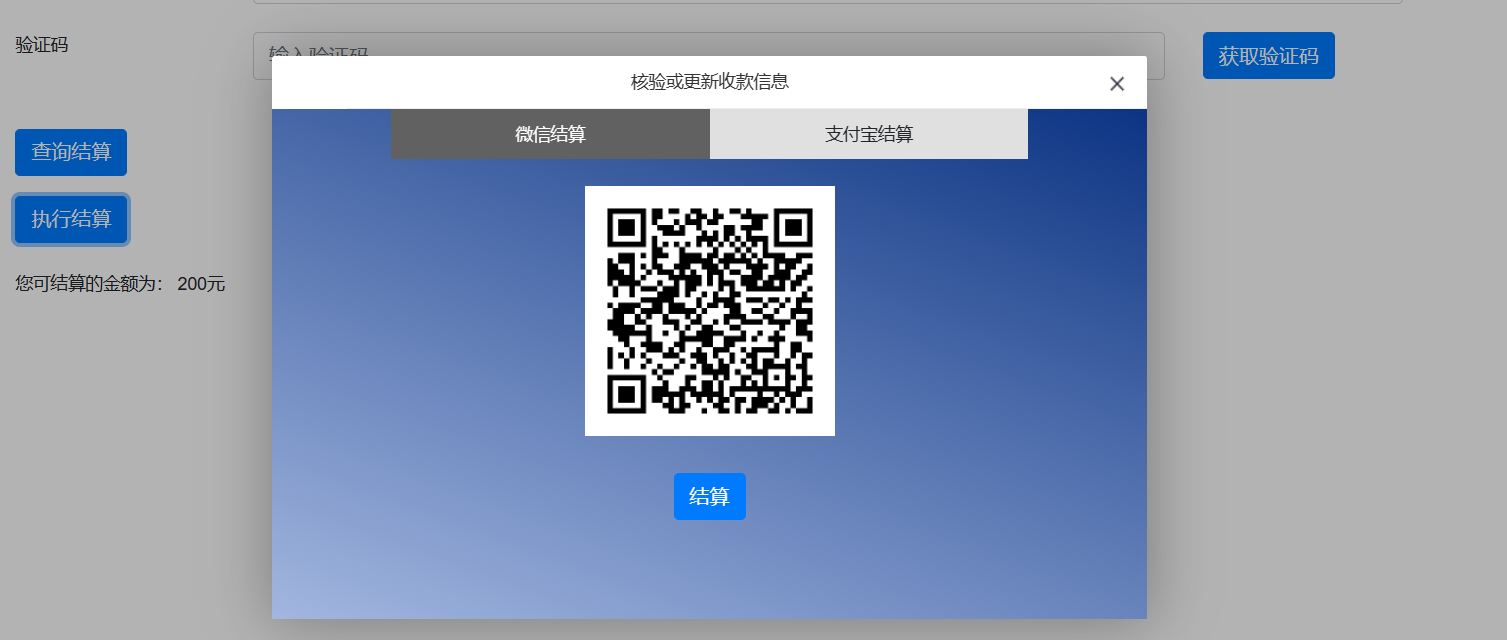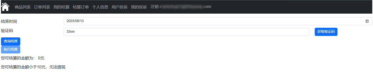 填入验证码点击查询结算按钮查询截止当日的未结算金额,结算金额大于10元才可结算。
