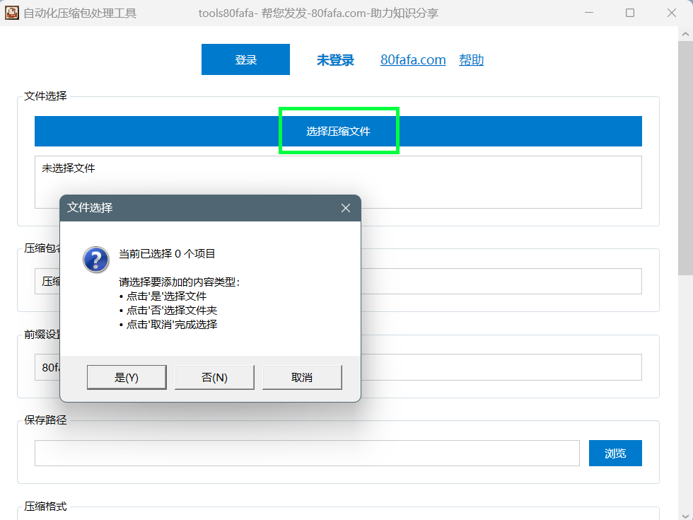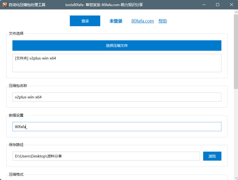 tools80fafa压缩软件是一款具有双重压缩功能自动化应用,主要两种使用模式,即登录模式和未登录模式,强烈推荐使用登录模式。