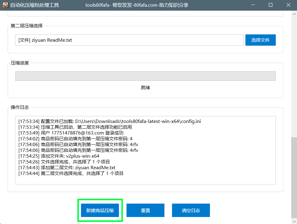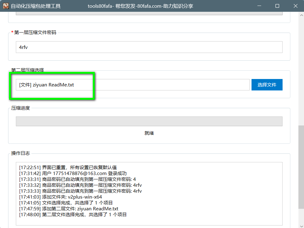 - 第一层压缩文件密码为用户在 https://www.80fafa.com 上新建商品的密码,这两者要保持一致。