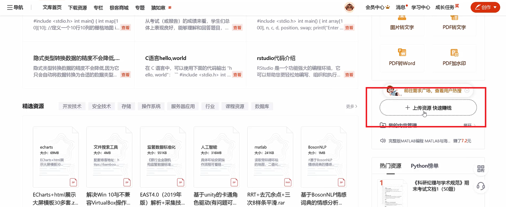 1. 分享者在完成创建商品,并将二维码与分享资源压缩成压缩包后,可以将链接分享到各大社交平台,比如小红书、百度贴吧、微信朋友圈......下面以CSDN做一个简单的示例,进行说明。