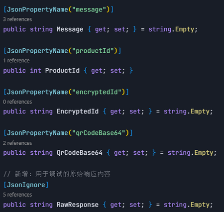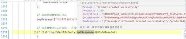 - API响应代码:用于接收和解析创建商品接口的响应数据;从API响应中获取Base64格式的二维码。
