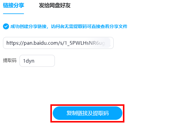 - 复制链接和提取码,这样就可以在各大平台上进行分享。
