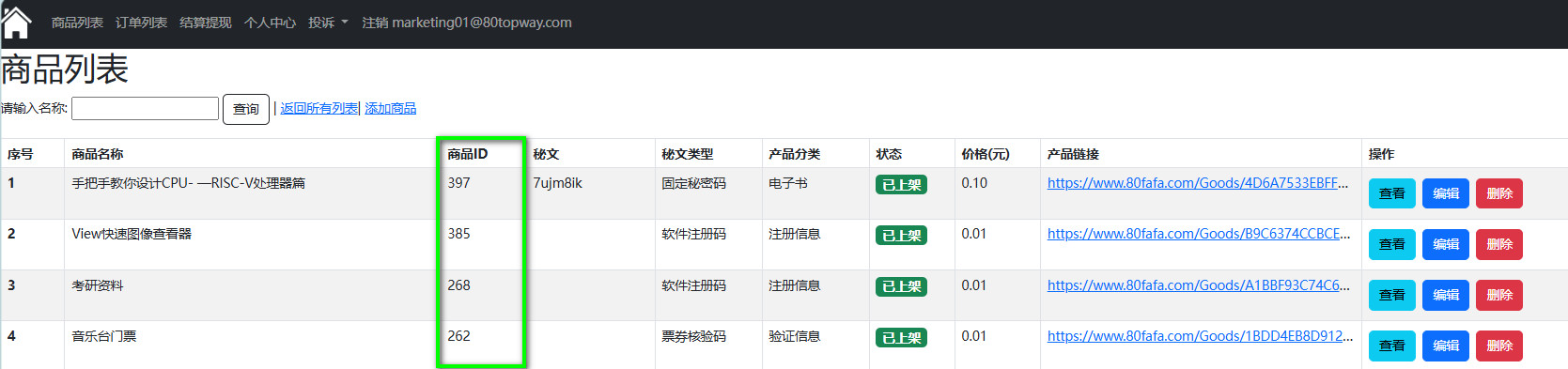 发布票券核验码商品