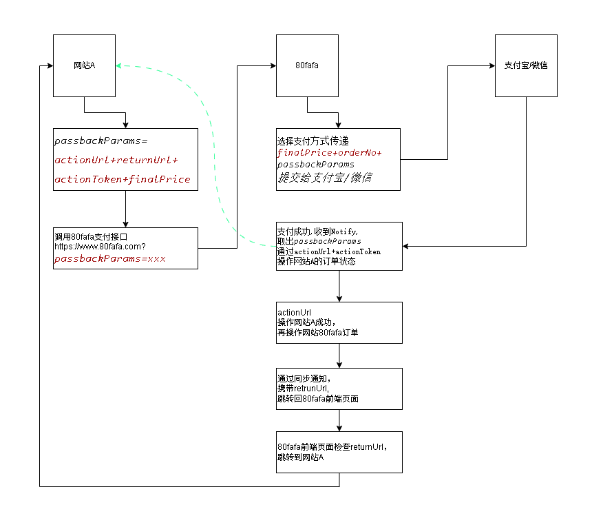 支付成功后,80fafa 对这个地址添加参数并调用此地址来通知商家。